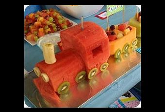 - Frutas rojas, mandarina….para la decoración de los “vagones”.