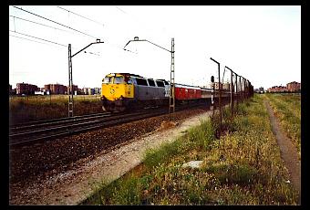 La locomotora que la remolca es una 333. diésel, ya que las vías extremeñas carecen de catenaria. Fabricada en los 70, es una de las locomotoras más potentes que ha recorrido en España por vías sin electrificar.