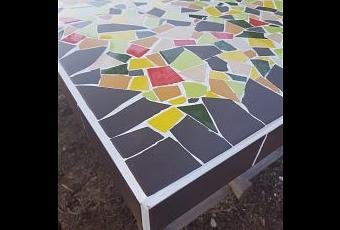 Se trataba de recuperar y restaurar una mesa al aire libre de 6m de largo. A los pies de nuestra preciosa montaña de Montserrat e inspirados por Gaudí, decidimos mosaiquear la mesa entre todos.