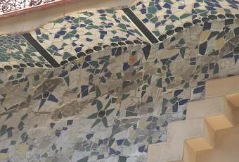 Mosaicos asimétricos compuestos por cerámicasde vivos colores y rejas filigranadas típicas del estilo conforman la fachada de la Casa-Taller de Patricio Romero metida entre bloques corrientes y un tanto.... feos, junto al Paseo de las Delicias.