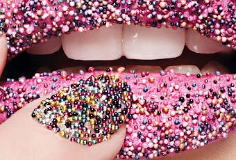 En varios colores y para todos los gustos. La foto muestra los labios con las esferitas, pero la marca se especializa en esmaltes, así que habrá que esperar si quieren dar besos con los labios pintados de esa manera.