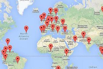 Cuando ingresan en el sitio, verán el mapa de mundo con los marcadores en cada país en donde existen datos de tendencias. Clic en algunos de los países y la app web les mostrará las 10 tendencias en ese momento.
