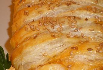 Y cuando lo tengamos... al horno, a fuego bajo hasta que el hojaldre suba y quede como éste: