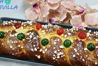 3- Pasar a la mesa de trabajo, amasar un poquito, dividir en 3 trozos de unos 300 gr. y estirar en rulos. Trenzar y unir los extremos. Tapar y levar de nuevo. (Podéis precalentar el horno a 50º, apagarlo y meter la bandeja).