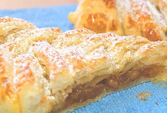 Preparación:Estiramos la lámina de hojaldre y la partimos por la mitad (a lo ancho) para hacer dos trenzas.