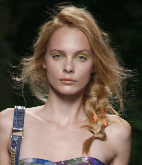 La clásica trenza tomada desde bien arriba, con mechitas sueltas y un lindo lazo