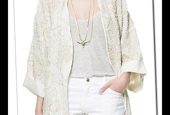 Amancio no para de tentarnos y yo confieso que soy muy débil. Os enseño tres de mis últimos caprichos de Zara, que de momento se quedan sólo en eso, caprichos. Intentaré no picar con ellos, porque todo no se puede… jeje El primero es este kimono con pedrería de TRF. Sin duda la prenda que más me gusta y la más especial, pero precisamente por ser tan especial y por su precio (99€), intentaré no caer con ella. Preciosa pero cara, y no demasiado amortizable (especialmente si se le caen fácilmente las lentejuelas).
