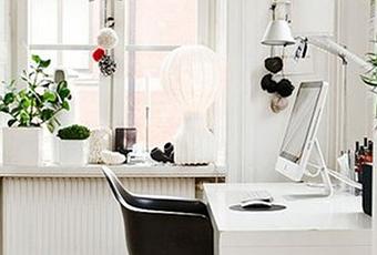 Esta agradable zona de trabajo rebosante de luz, rodeada de plantas y con los detalles decorativos justos para hacerla más bonita aun si cabe.