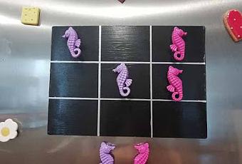 Ha sido muy divertido hacerlo, pero más divertido es pasar por la nevera y retar a alguna de las niñas o a Rafa a perder en nuestro tres en raya imantado.