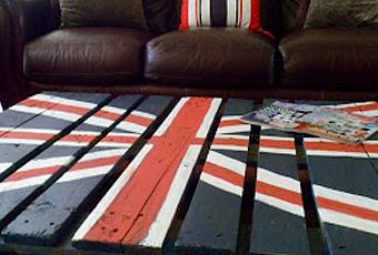 três Mesa/palet Union JackYa sabéis de mi obsesión por los palets así que imaginad el flechazo instantáneo que sufrí al conocer este D.I.Y. en clave british.¿Puede ser más GENIAL?Un besazo y feliz miércolesMaca :)Imágenes: Très Chère