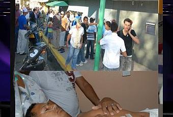 Curiosos se aglomeran frente a la sucursal del banco BHD de Esperanza luego del intento de asalto esta mañana.Dos guardianes de seguridad y un supuesto asaltante resultaron heridos de gravedad esta mañana durante un frustrado intento de asalto a la sucursal del Banco Hipotecario Dominicano (BHD) de esa ciudad.Los vigilantes heridos fueron identificados como Andrés Jiménez, de 23 años y Julián Batista, de 47, quienes recibieron varios impactos de balas de Carlos Domínguez Jiménez (Miniño), quien supuestamente entró a la entidad bancaria con una pistola en una mano y un bulto negro en la otra, y dijo “esto es un asalto”.