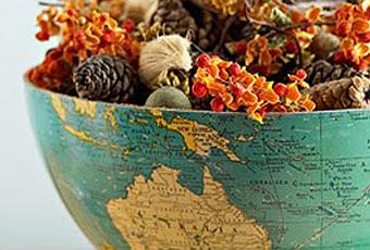 Si tienes una bola del mundo que esté rota puedes reutilizarla y convertirla en un frutero, un centro de mesa o un cacharro para las palomitas. Cualquier uso será original y decorativo.