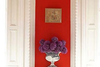 El atrevimiento de esta pared ROJA, ROJA, combinada con esas preciosas carpinterías blancas