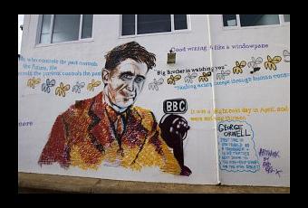 (George Orwell mural, Southwold Pier. Created by Pure Evil in July 2014. From: http://www.geograph.org.uk/photo/4244545)
