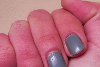Muy simple y basada apenas en el color. Este azul agrisado que veis es de LOLA, de nombre Snow Blue y me encanta. Aunque es un color oscuro, le veo ya un toque de malva que anuncia a la primavera y de ahí el nombre. Como quería la manicura para diario, me conformé con añadir un par de stickers de Peggy Sage y un toque de top coat.