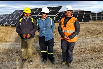 No hay trabajo específico para ellas y ellos. Todos soportan por igual el mismo frío y los mismos azotes del viento en sus rostros. Han confeccionado el hormigón para las bases de los paneles; han hecho zanjas y han apretado muchos tornillos; tantos como para armar la estructura que sostendrá con firmeza 2.000 paneles solares.