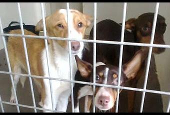 Estos tres podencos estan en la perrera, son dos machos y una hembra (creemos que los machos chocolates, la hembra blanca y canela) esta ademas parece que tiene un problema en los ojos y no ve bien, no sabemos si estará ciega o esque los tendrá malitos, en el videose aprecia bien que tiene los ojos muy raros.