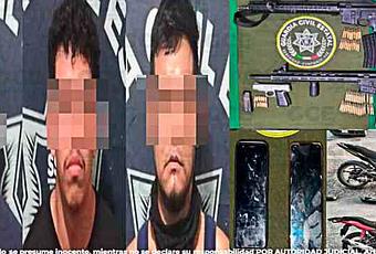 Los detenidos, identificados como Augusto «N» de 19 años, Emanuel «N» de 22 años y Amadeo «N» de 34 años, tenían en su posesión un arma de fuego corta calibre .9 milímetros, dos armas de fuego largas, tres cargadores, 12 cartuchos útiles calibre .9 milímetros, 48 cartuchos útiles calibre 5.56, dos teléfonos celulares y dos motocicletas de la marca Italika, una de las cuales tenía reporte de robo con violencia.