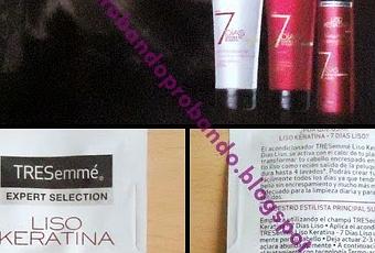 Mi experiencia personal es un poco rara, pues con la gama LISO KERATINA ha sido buena, pero con esta de 7 DÍAS no lo ha sido tanto, porque no ha conseguido mantenerme el pelo liso entre lavados.Much@s de vosotr@s sabéis que me encanta la marca TRESemmé, y que, aunque cambie de vez en cuando de marca para aportar a mi cabello otras cosas que no sean siempre lo mismo, me cuesta desprenderme de ella pues la calidad que me aporta no me la aportan otras marcas. Sabéis que he probado bastantes gamas de Tresemmé, creo que por mi baño han pasado todas aquellas gamas que le pueden ir bien a mi cabello, algunas de estas gamas las alterno con otras nuevas. Use la gama que use, generalmente es Tresemmé, es una marca que me encanta.Cuando vi el anuncio de la gama LISO KERATINA 7 DÍAS supe que tenía que probarla. Se me presentaban unos productos que, tras el alisado, mantenían el pelo liso durante 7 días. Me pareció magia, pues esto no pasa ni cuando una va a la peluquería, así que me entraron muchas ganas de probarlo. Yo tengo el pelo ondulado, y me lo plancho de uvas a peras porque no quiero estropearlo, la verdad es que me lo cuido bastante. Una gama así era mi salvación, porque era la manera de que el planchado me durara unos días. Vi el precio del pack, pero era bastante elevado (alrededor de los 13€), así que me desencanté un poco. Pero poco después vi, a través de las redes sociales, que podía pedir muestras gratuitas. Ya sabéis que las muestras son una genial idea para comprobar si el producto nos funciona y poder gastarnos el dinero con conocimiento de causa, así que pedí las muestras entrando en la página web de la marca y esperé a que me llegaran.Me llegaron tras más de un mes. Encontré en el buzón un sobre negro de la marca, dentro de él encontré un desplegable de tres páginas que incluía tres sobrecitos en su interior, uno de cada producto que compone la gama. En el desplegable se nos informa sobre sus beneficios y el modo de aplicación de los tres productos.