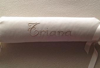 Y juego de sábanas, para el carrito también, en beig con bordados en rosa. La abuela quedó encantada, espero que también a la mamá le gustase. Buen Jueves.