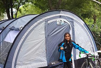 Llegamos al camping a la 13h y montamos la tienda y descargamos las cosas .