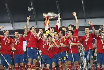Sin embargo, cuando se ve uno de esos (raros) partidos en que el que mejor juega gana con diferencia y además convence con su juego y hace disfrutar al público, entonces la satisfacción ya es completa, y se ha alcanzado el cenit de este deporte que a tantas masas atrae. Este domingo, el partido empezaba con posibilidades del 50% para cada uno de los dos equipos. Italia venía de un partido brillante en las semifinales, en que eliminó a la todopoderosa Alemania, mientras que España había brindado destellos de muy buen juego (contra Irlanda especialmente, una selección menor, de todos modos), pero que tuvo problemas en las semifinales. No se consiguió pasar del empate a cero contra Portugal, y sólo gracias a la lotería de los penalties fue que España alcanzara la final que se jugó este domingo. Sin embargo, tras el silbato del árbitro (como en toda la Eurocopa, precedido de la vistosa cuenta atrás en las pantallas gigantes del estadio), ya se vio que los dos equipos ayer no estaban igualados. España pronto demostró que tenía capacidad defensiva (y no sólo por los excelentes defensas que jugaron ayer, y que ya lo habían hecho en los partidos precedentes) para desmontar el juego de ataque de los italianos. El poderoso Balotelli se vio anulado por un Sergio Ramos muy inspirado y atento. Y, alguna vez que llegaron a la puerta española, bajo los palos estaba un Iker milagroso, que parece atraer todos los balones y que, además, es el capitán indiscutido de la selección, a la que ha impregnado de su bonhomía. Y en el centro del campo empezó a desarrollarse la magia del juego del fútbol. Xavi, que había estado algo mustio en los partidos previos, ayer estuvo en lo más alto de su genialidad, pensando e identificando en todo momento las mejores jugadas, y ejecutando los pases con total precisión. Iniesta, que ya ha sido proclamado por la UEFA como Mejor Jugador de la Eurocopa, estuvo muy travieso, como en él es habitual, y sembró la confusión y la impotencia en la defensa italiana. Cesc Fàbregas, que ayer volvió a jugar de falso 9, recibió un balón medido y supo deshacerse lo suficiente de su marcador como para ponerle un balón que olía a gol en la cabeza de Silva, que la empujó con sabiduría lejos de Buffon, y marcó el primero. Poco después, una nueva maravilla. Jordi Alba, ese lateral novato en la selección que ha debutado en esta Eurocopa, y que ya ha demostrado de lo mucho que es capaz, identificó un pasillo de desmarque y se recorrió el campo entero, para estar en posición correcta, exactamente en el lugar donde Xavi le colocó otro balón de terciopelo, que controló con sabiduría y que empotró en la red de los italianos. 2-0 mediada la primera parte. Nadie esperaba que el partido se nos pusiera tan de cara, y mucho menos los italianos, que ya estaban sumidos en la confusión de su propia impotencia. Prandelli agotó los cambios muy pronto, intentando encontrar un remedio válido a la manifiesta superioridad de los españoles en el campo. Pero no obtuvo mucho éxito. Irse al descanso con un 2-0 a favor era algo inaudito, y garantizaba una final con muchos menos nervios de lo que podía haberse previsto. En la segunda parte, Italia metió en el campo a Thiago Motta, como último recurso. Pero en una jugada sin nada especial, se rompió (una mala posición le provocó, sin duda, una ruptura fibrilar severa) y no pudo seguir jugando. Sin posibilidad de más cambios, Italia no tuvo más remedio que afrontar la última parte del encuentro con 10 jugadores. Del Bosque hizo los cambios habituales, pero nada agobiado por tener que buscar alternativas, porque en el campo toda la maquinaria funcionaba a la perfección. Entró el niño Torres, que marcó el tercero en una de sus primeras internadas, ante una Italia que ya estaba desarbolada. A pesar de los pocos minutos que ha jugado en toda la Eurocopa, Torres ha manifestado sus grandes dotes de delantero oportunista, de modo que se ha ganado la Bota de Oro al más goleador. Un poco más tarde entró Mata, que marcó el cuarto gol a pase próximo (y muy generoso) del propio Torres. En resumen, cuatro goles marcados por cuatro jugadores diferentes. Un equipo sólido, que sabe a lo que juega y que, lo que es extremadamente importante para asegurarse la continuidad de los éxitos, sabe enseñar muy rápido a los nuevos jugadores que se van incorporando a la Selección. Mata y el extraordinario Jordi Alba son un buen ejemplo de ello. Enfrente, una Italia que parecía fatigada desde el primer momento, pero que muy pronto se dio cuenta de que poco podía hacer para enfrentarse a un equipo que es una maquinaria perfecta de elaborar fútbol. Un equipo muy experto, que acabó fundido de perseguir espectros, de ser humanos frente a un equipo que a ratos parecía de dibujos animados. Una victoria indiscutible de España, que convenció a propios y extraños de que sabe jugar el mejor fútbol que se ha visto jamás en los campos de este mundo. Este lunes, toda la prensa internacional elogia el juego de la selección española. Una victoria que se une a las de la Eurocopa 2008 y del Mundial 2010, y que ha llevado a España a conseguir lo que nunca nadie había podido conseguir hasta ayer. Con el aplauso, además, de público y crítica. Puyol y Villa, que no han podido participar activamente por sus respectivas lesiones, estuvieron ayer apoyando a sus compañeros en Kiev, pero no quisieron robarles el más mínimo protagonismo a los 23 (alguno incluso sin jugar ni un minuto) que nos han llevado, de nuevo, a la gloria. Mi más sincera enhorabuena a Vicente del Bosque y a todo el equipo, que nos han hecho disfrutar tanto y que han convencido a todo el mundo de que el fútbol también puede ser arte. Algún día, todos los equipos tendrán que jugar así. Pero lo que me parece más importante es que se ha desarrollado un espíritu de equipo, una maquinaria implacable y unos automatismos, que tienen muy buenas probabilidad