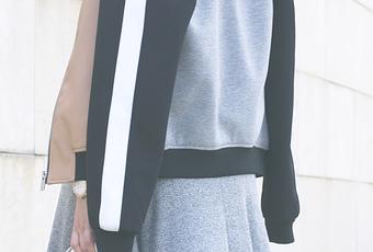 ¡Hola a todas! Hoy os enseño un look con esta chaqueta bomber tricolor que para mi gusto es sencillamenteperfecta por la combinación de colores y de tejidos (neopreno y cuero) además de que es un comodín para llevar todoslos días ahora que llega la primavera y decimos adios al abrigo. La combiné con la falda midi gris de Zara, que ya os heenseñado en varios posts, ¡prometo no volverla a sacar! Eso sí, esta vez como novedad, con zapatillas cómodas parapatearnos Bilbao. Veréis las poquitas fotos pero con esta cara alérgica eran suficientes, para qué más! ¿Qué os parece este outfit? Esta semana tengo nueva sección en el blog, 'ON ROUTE' y dos posts casi preparados para empezar a darle contenido ;) Os espero por aquí.