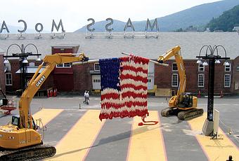 acrylic felt with excavators and alumininum utility poles courtesy dodge gallery via