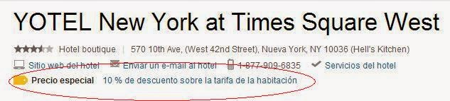Pues bien -que no quiero irme del tema- el otro día, navegando por esta página y subiendo y bajándola sin parar en busca de más comentarios, pulsé sin querer en un pequeño enlace con una etiqueta amarilla que estaba bajo el título del hotel que estaba mirando. La verdad es que ese botoncito estuvo ahí todo el tiempo, pero siempre pensé que era un anuncio. Y bien, un anuncio era, pero no sabía que era uno de los que interesan de verdad... (Cuánto daño hace Internet, en el momento que parece que algo es publi huimos sin control!)