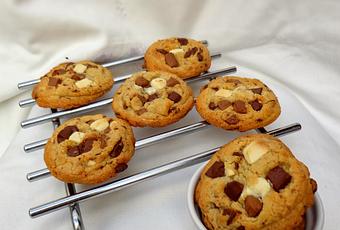 Una vez lista la masa de galletas, incorporamos los chocolates troceados, reservando un poco de cada uno para decorar.