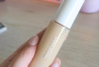 “Triple Wave es una base de maquillaje que combina el cuidado de la piel con el maquillaje, diseñada para fundirse perfectamente en la piel y ayudar a cubrir el tono desigual y las imperfecciones” (fuente: Technic)