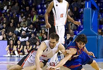 En medio cuarto los azulgrana superaron su pobre balance del período anterior. Una réplica contundente que no destempló al CB Murcia, que suplió las bajas prestaciones de sus pívots (Chris Moss se quedó en siete puntos) con el gran partido de los exteriores Tomas Delinnikaitis (13) y Milos Vujanic (26). Los dos bases del conjunto de Edu Torres –José Antonio Marco no jugó–se repartieron ocho de los nueve triples del equipo (9/19) y permitieron que los visitantes no tuviesen desventajas exageradas. No había nadie tan motivado como Vujanic, que nunca podrá olvidar que en 2005 llegó al Barça como fichaje estrella y no pudo destacar por las lesiones, que le permitieron únicamente jugar 40 minutos en Liga, repartidos en cinco partidos. Campeón del mundo con Serbia (2002) y de la Euroliga (2007) conPanathinaikos, Vujanic hizo un partidazo en cuanto a anotación, pero con puntos muy negros como ocho pérdidas. Ésa fue la gran diferencia en su duelo directo con Ricky, que sólo perdió una y recuperó tres.