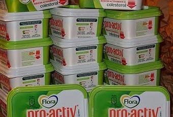 Flora Pro-Activ es una margarina que reduce considerablemente el colesterol en tres semanas, (entre un 7 y un 10% en ese tiempo), lo que está muy bien porque yo tengo el colesterol entre 240 y 260, siempre, lo mio es de familia y eso que hago mucho ejercicio, pero tengo que controlar la dieta mucho más, claro está. Pues bien, si en tres semanas lo reduzco en un 10% se me quedaría en250 - 25= 225 mg/dl de sangre, lo que está muy bien para lo que yo estoy acostumbrada. (A más de 200 hay que bajarlo).