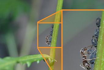 En estas fechas es bastante sencillo observar una curiosa simbiosis entre dos especies de insectos. El primer paso es localizar una planta que contenga unos famosos bichitos conocidos como áfidos o pulgones, aunque también valdrían cochinillas (cóccidos y pseudocóccidos), chinches arbóreas (membrácidos) y algunas orugas de mariposas licénidas y riodínidas, me centraré en los primeros al ser los más abundantes, al menos en las latitudes por las que se mueve un servidor. El segundo es localizar una colonia de estos insectos en alguna rama, una vez logrado fijémonos en sus quehaceres. En un principio no se ve gran cosa, únicamente a los pulgones succionando con su aparato bucal transformado en un estilete la savia que circula en el interior de los vegetales. Mejor dicho lo que se observa es el "trasero" de estos bichos. Es en este momento, como diría Peter Griffin transformado en tampón, "y ahora sólo toca esperar". Es sencillo ver de repente a alguna hormiga deambulando entre la colonia de los áfidos, lo más curioso es que el himenóptero parará delante de algún pulgón y con sus antenas tocará la parte trasera de éste, como repuesta el áfido segregaría una pequeña gotita que es rápidamente absorbida por la hormiga. Esta gotita, conocida como ligamaza o mielaza tiene un altísimo contenido en azúcar, fruto de la incapacidad del aparato digestivo del pulgón de aprovechar todos los azúcares presentes en la savia succionada, además de algún que otro compuesto proviniente de los procesos fisiológicos del pulgón.