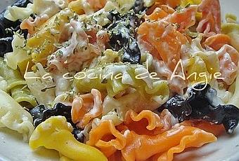 - Preparar una mayonesa, añadir 1 cebolleta picada y una lata de atún. Batir todo junto y servir con la pasta cocida. Espolvorear orégano y servir.