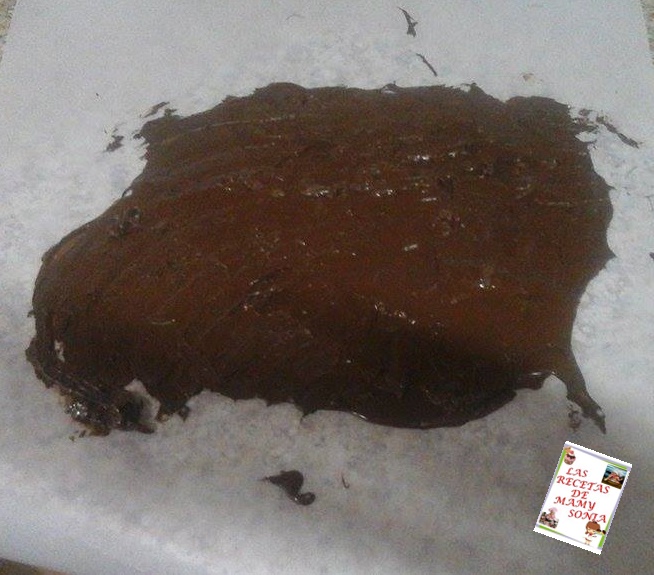 En primer lugar derretimos una tableta de chocolate y en un papel de