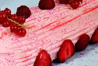 - Extender el bizcocho, rellenar con la crema y enrollar con cuidado. Cubrir con más crema y decorar al gusto con fresas, frambuesas, grosellas...