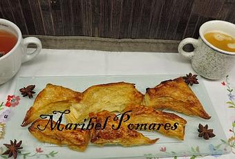 Hemos hecho un dulce para tomar el café o infusión y encima aprovechando los trozos de hojaldre que nos habían quedado.