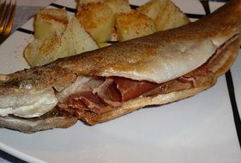 La trucha es un pescado muy bueno y barato. Ahora casi todas son de piscifactoría, pero no por eso menos buenas. Se pueden cocinar de un montón de maneras. La más común en mi casa es esta, fritas con jamón. Espero que os guste.