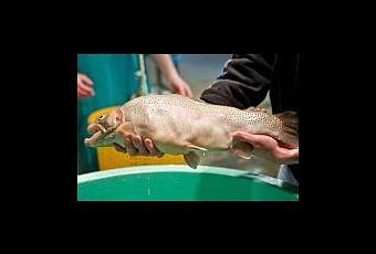 Esta trucha es el resultado de diez años de experimentos realizados por un equipo dirigido por Terry Bradley, del departamento de ciencia pesquera, animal y veterinaria.