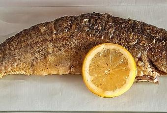 - Cuando ya estén, retiramos las truchas y las colocamos en una fuente honda junto con las hojas de laurel y el limón, lavado y cortado en rodajas.