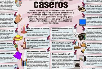 Todos los días en casa resultan muchas actividades por hacer que nos pueden tomar tiempo y que a veces incluso nos hacen invertir dinero. En esta infografía vas a ver algunos trucos caseros que puedes tener en cuenta a la hora de hacer algunas labores en el hogar, con ella podrás aprender algunas cosas que te facilitaran tus labores e incluso te ayudarán a ahorrar. Te gustó esta Infografía compártela en tus redes sociales!