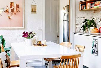 En la cocina, es suficiente una lámina rosa y plantas para transformar la sencilla decoración y lograr una habitación enérgica. Atención a la pared donde se sitúa del fregadero: el rey de los revestimientos de ladrillo visto, blanco, desconchado y con un aire totalmente decadente. ¡¡¡¡Espectacular!!!!
