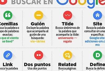 Quizás no sepas que encontrar los que buscas en Google puede ser mucho más fácil con las indicaciones que aparecen en esta infografía. Todos solemos elegir las palabras clave que a nuestro criterio mejor encajan con los que queremos encontrar, pero, como sabes, hay que bucear entre muchos resultados. Al principio puede resultar algo tedioso, pero seguro que con el uso te acostumbras y ahorrarás un tiempo precioso.