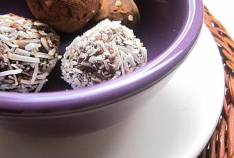 5. Pasamos las bolitas de chocolate por el coco rayado y las almendras picadas para que queden bien cubiertas. Y voilá! El resultado serán unas deliciosas trufas de chocolate, coco & almendras de las cuales no podrás comerte solo una!