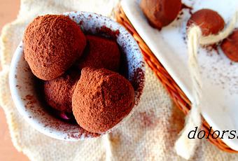 Ingredientes para unas 20-25 unidades:175 gr de chocolate fondant2 c/s de coñac50 gr de mantequilla sin sal4 c/s de azúcar glas50 gr. de almendras molidasCacao en polvo