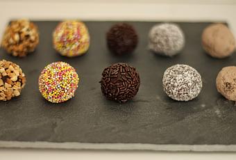 Pues así es, he hecho unas cuantas (unas 40) que he congelado en una tartera bien cerrada para que no coja olor a las cosas que tenemos en el congelador. Se pueden congelar perfectamente, aunque las que llevan cacao en polvo por fuera no quedan bien de aspecto al sacarlas, quedan como con manchitas de humedad, el resto perfectas y perfectas de sabor. Con sacarlas 5 minutos antes de consumir es suficiente, no queda textura de congelado sino suave y fría.
