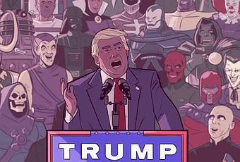 Desde la historieta muchos creadores encontraron sus símiles en varios personajes, incluso ya en 1971 Jack Kirby presentaba un proto -Trump , Glorious Godfrey, Kirby creó un demagogo fascista que extrañamente anticipa Donald Trump, hasta el peinado de color naranja que desafía la gravedad. También aparece Trump como parte del Tribunal e los Búhos en Batman, o mas claramente como Modok en un comic de Spider-Gwen Annual #1 (2016). Robert Crumb ya tempranamente también se había ocupado de Trump, es muy seguro que con el inicio de su gobierno Trump siga encarnando al mal quizás aun mas que Richard Nixon.