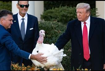 El presidente bromeó que los pavos eran entrenados para permanecer en calma bajo cualquier circunstancia, “que será muy importante debido a que ya han recibido citatorios para comparecer en el sótano de Adam Schiff el jueves”.