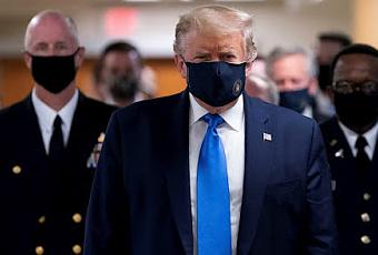 El presidente de EEUU, Donald Trump, apareció en público el pasado sábado con una mascarilla de color azul oscuro que, en un extremo, tenía estampado el sello de color dorado de la Presidencia y estaba sujeta a sus orejas. Era la primera vez que la usaba desde el inicio de la pandemia del coronavirus, en un momento en el que el país debate si su uso debe hacerse obligatorio. El presidente la utilizó durante una visita al hospital militar Walter Reed, a las afueras de Washington, donde tenía previsto reunirse con el personal sanitario y con militares que están recibiendo tratamiento.